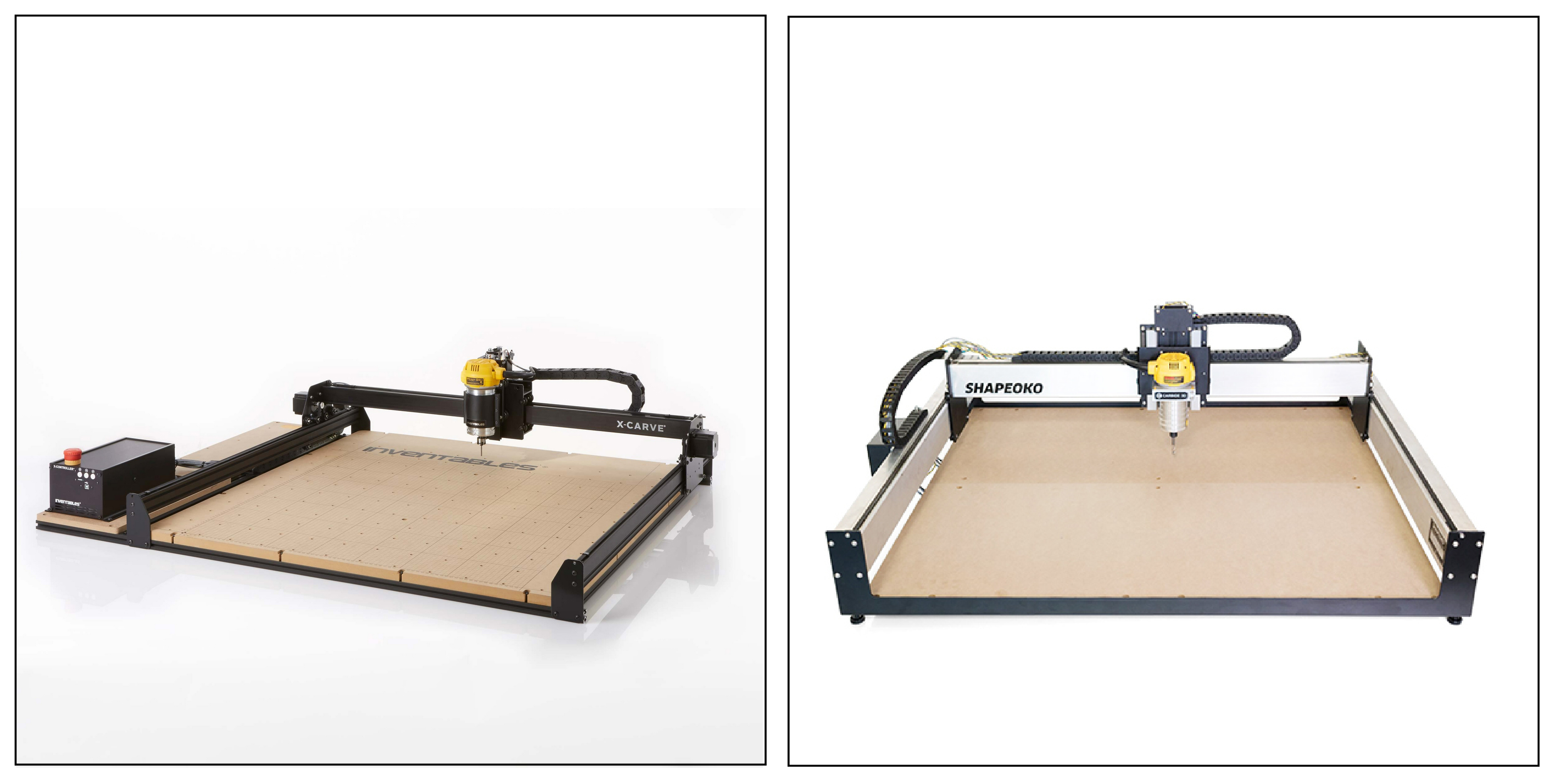 CNC router machines are a bit less expensive than laser-cutters. Although they are most commonly used for cutting in the X & Y direction, some are able to cut in the Z direction as well. There are two small shop versions I’d recommend. The first is the X-Carve by Inventables , and the second is the Shapeoko by Carbide 3D.