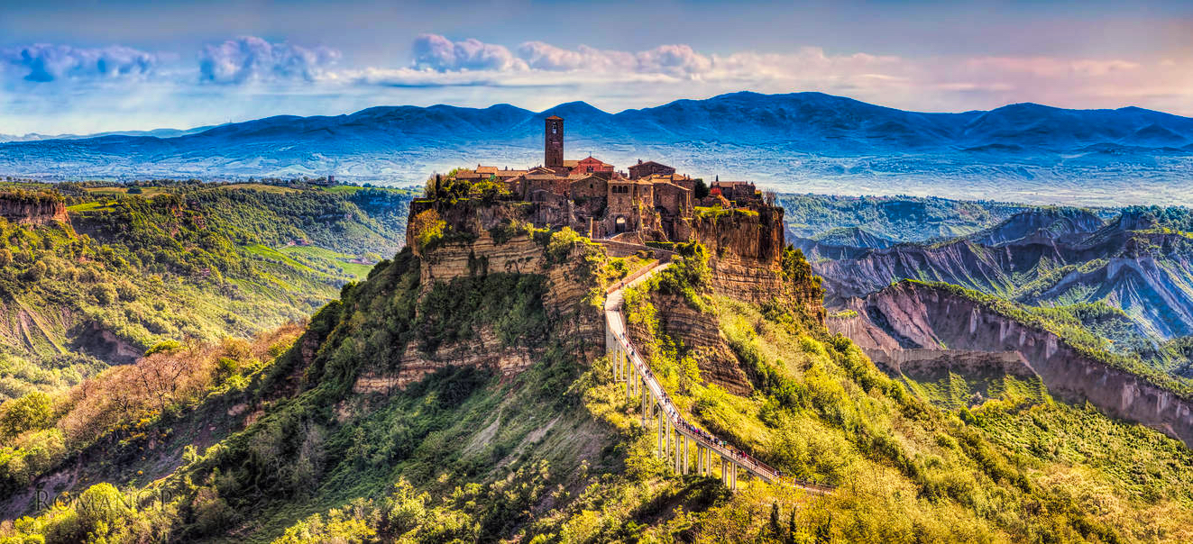 Another example is the Italian Hill town of Civita di Bagnoregio. Originally founded by Etruscans more than 2,500 years ago, the Etruscans had a propensity for building on hill tops or ridges for security reasons.
