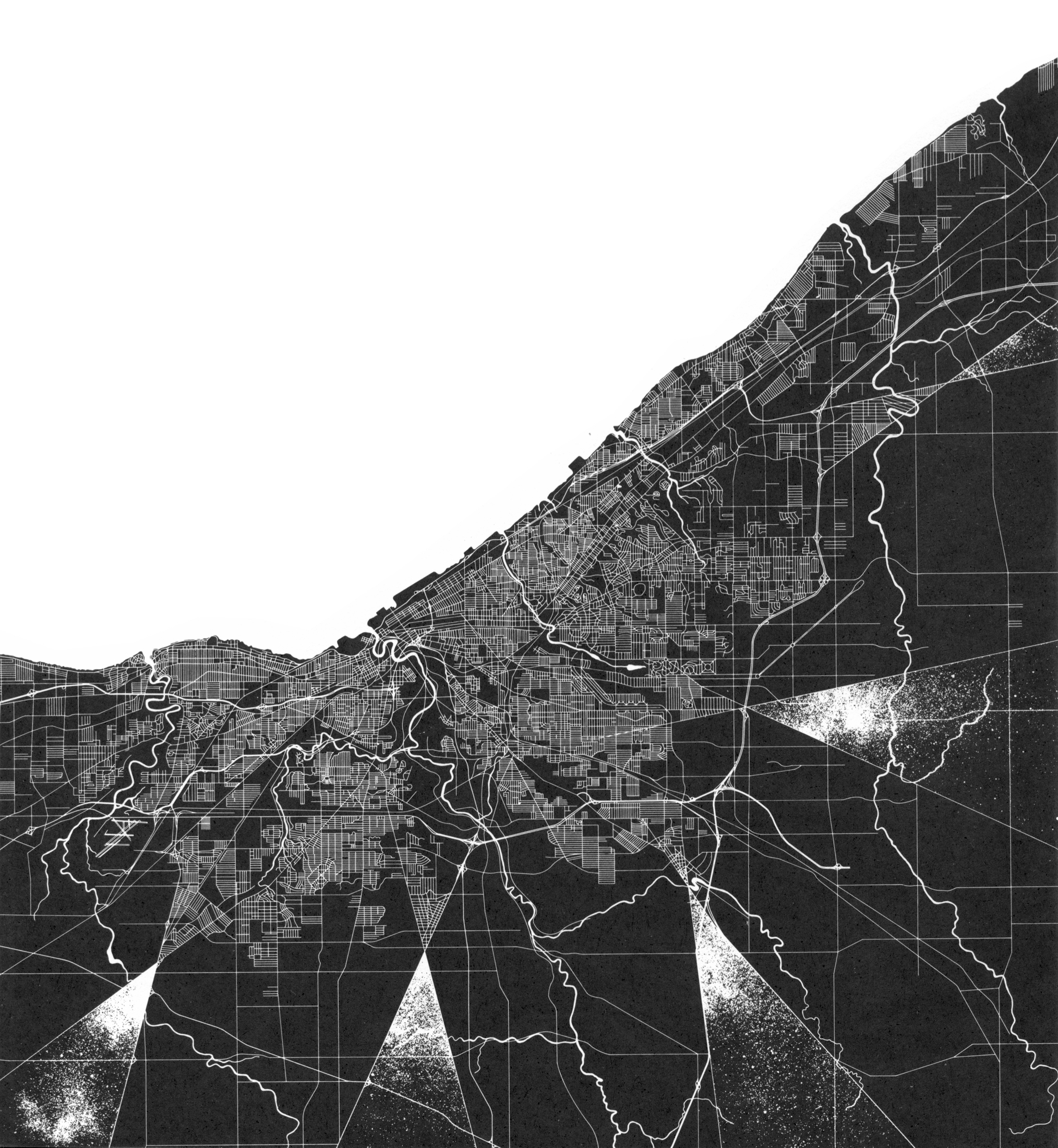 “Five X’s spaced along the inland edge of Cleveland (the northern edge is formed by Lake Erie) define precise crossover points from new urban areas to a clarified rural region.”