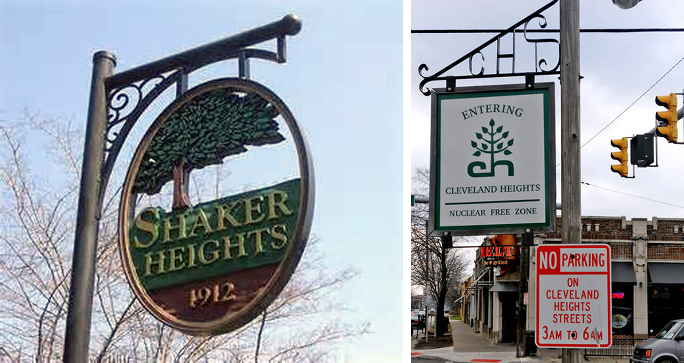 In the image below you see the boundaries of three small cities, Cleveland Heights, University Heights, and Shaker Heights.