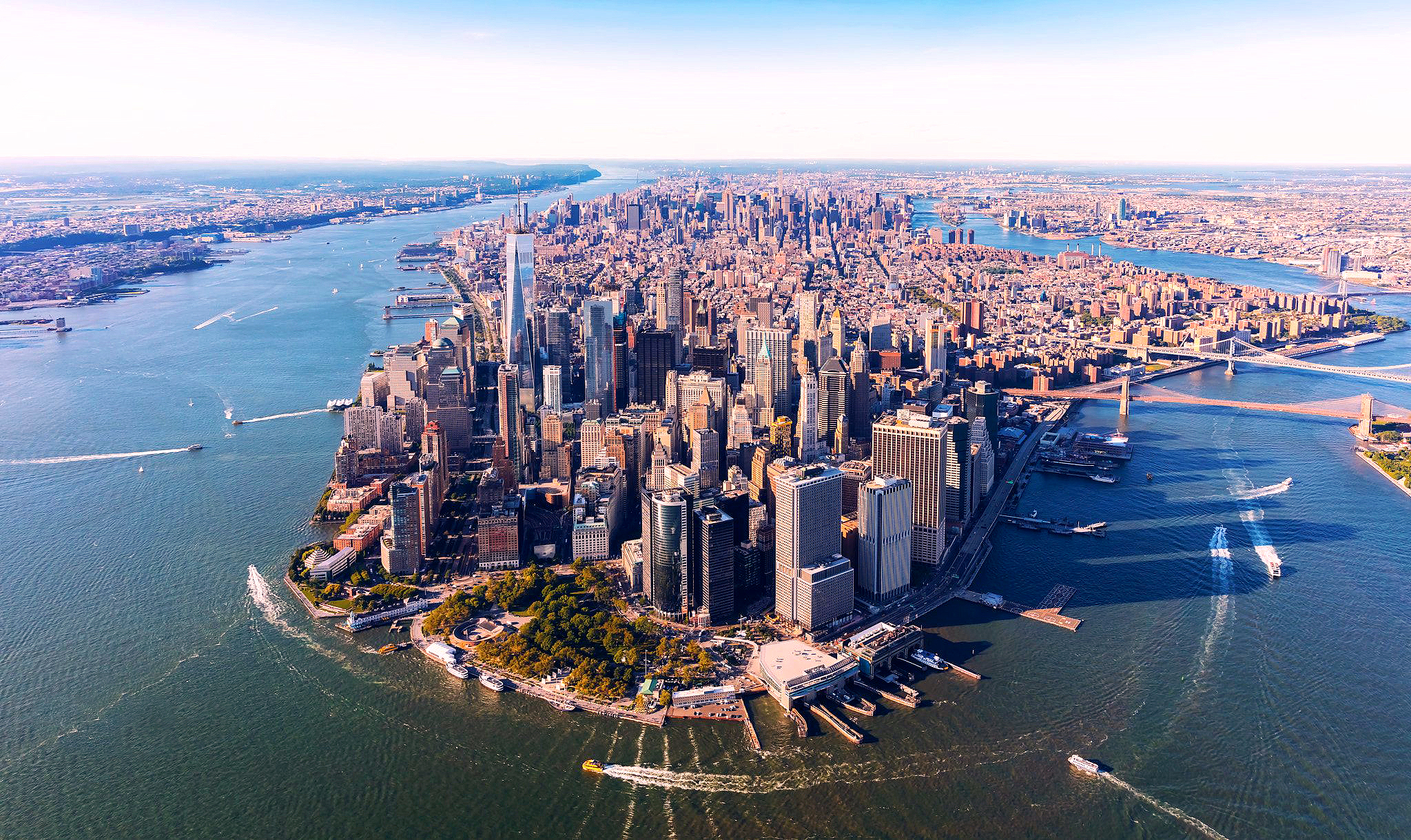 Typically, the clear-defined edge occurs when there is a change in massing, height, and/or geography. Manhattan is an example of all three. It is dense, has a wall created by the height of its skyscrapers, and being an island has a clearly defined edge which is viewed from various sides of its water masses.