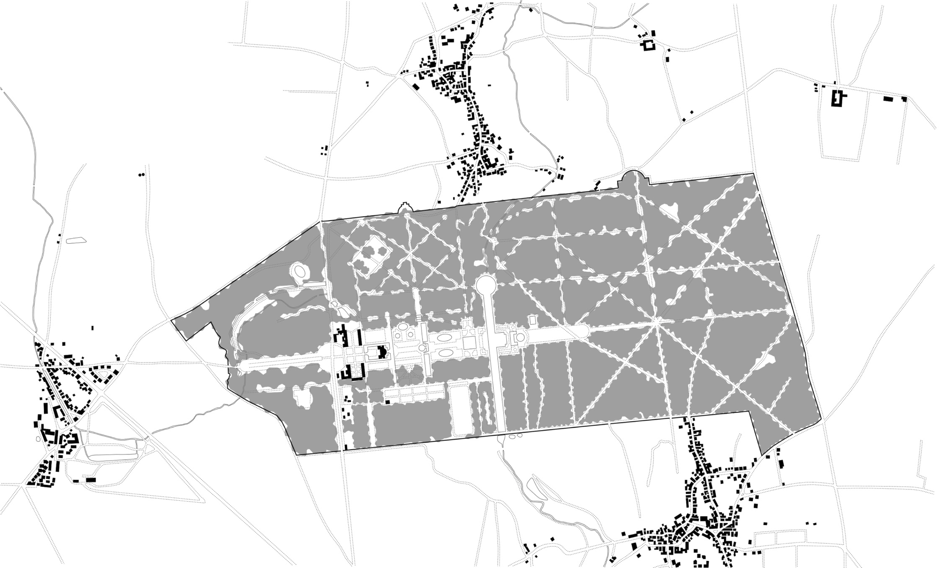 The long baroque axis, or ‘grand axial vista’, first appears in France with the design of the Luxembourg Gardens in 1620, and in the gardens of Chateau of Vaux-le-Vicomte. Built in 1658-61 for Nicholas Fouquet, the finance minister of Louis XIV, the gardens of Vaux-le-Vicomte were designed by André Le Nôtre. Shortly after the opening celebrations of the chateau Fouquet was jailed, and Louis XIV afterwards employs the designer, Le Nôtre, for his palace and grounds expansion at Versailles.