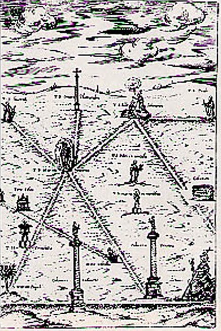 Cardinal Montalto, an exiled religious leader, had developed ideas for reorganizing Rome before he became Pope Sixtus V. He wanted to reinvigorate the city and create a place suitable to be the center of the Christian world. Using the entire city, Pope Sixtus V overlaid an organizational structure for circulation routes that connected major spaces and structures by means of an element that would literally establish points in space that would be difficult to be taken away (Bacon’s “Design of Cities”1967:131).