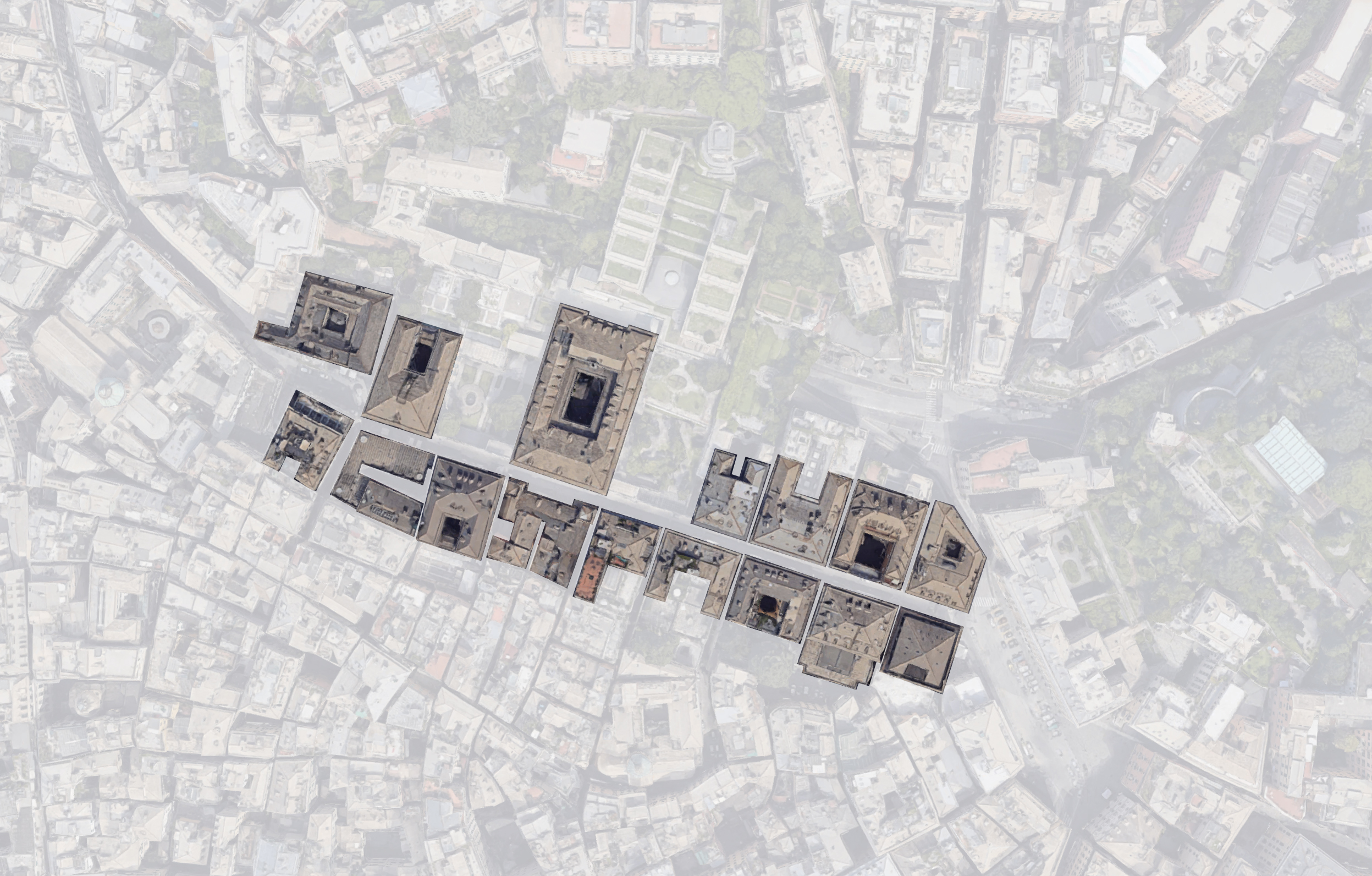 The idea of relocating several existing obelisks to key locations helped to direct the development of circulation paths between them in straight avenues that converge on the obelisks but also influenced the space that surrounded each one and along the connecting paths.