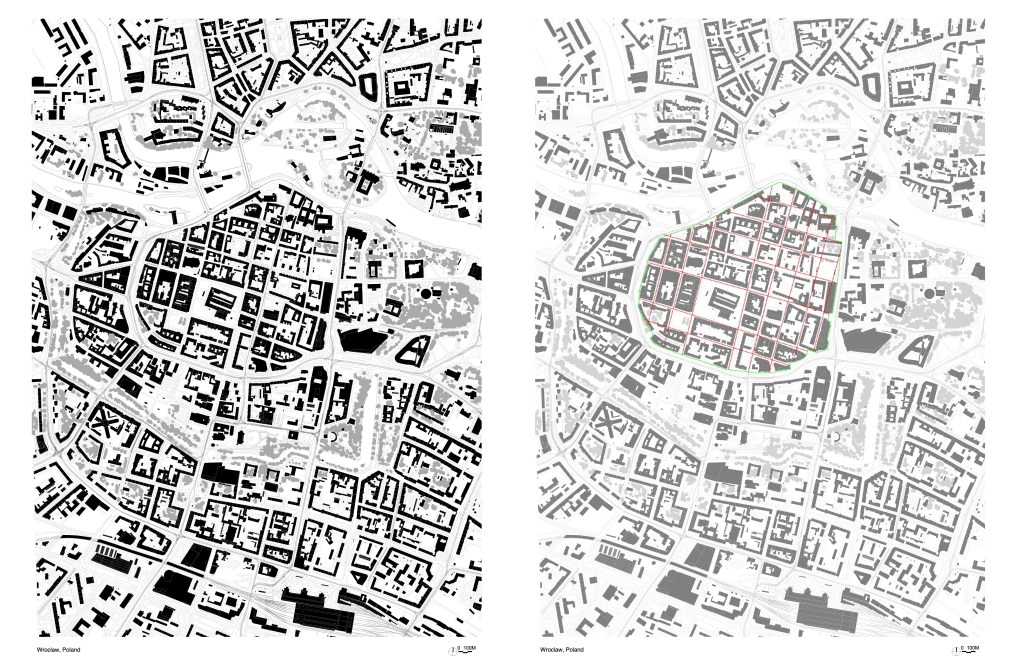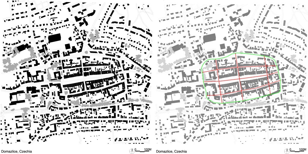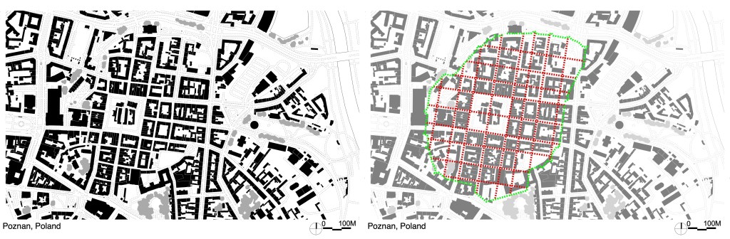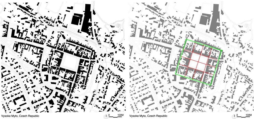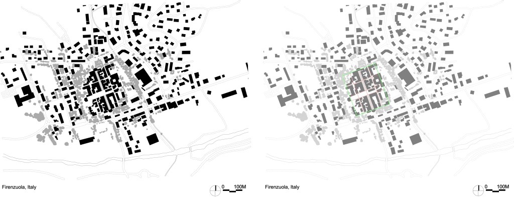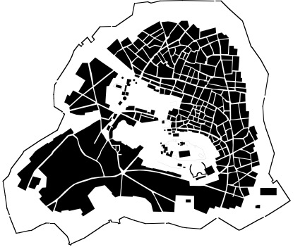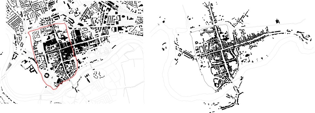 The following are a series of figure ground drawings illustrating plans of medieval new towns throughout Europe. I do not plan to go into the political history of the area, or why the cities were actually created. I’ll referyou to variousreadings if you’d like to do further research into the subject. What I will do, after I illustrate all the plans I’ve drawn, is to discuss some of the various repetitive conditions I’ve noticed during my research. I’m also supplying accompanying analysis, and possible earlier maps of the cities, along with some photos I’ve discovered that either show an aerial view of the urban center, or a photo of the major town square.