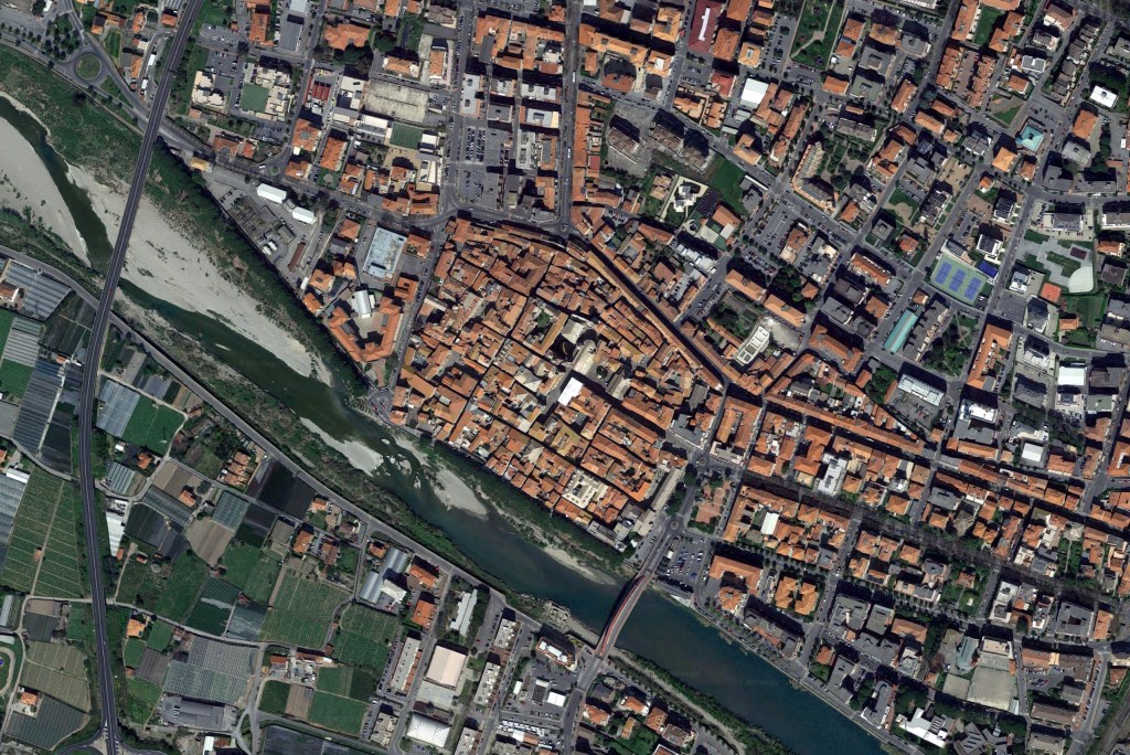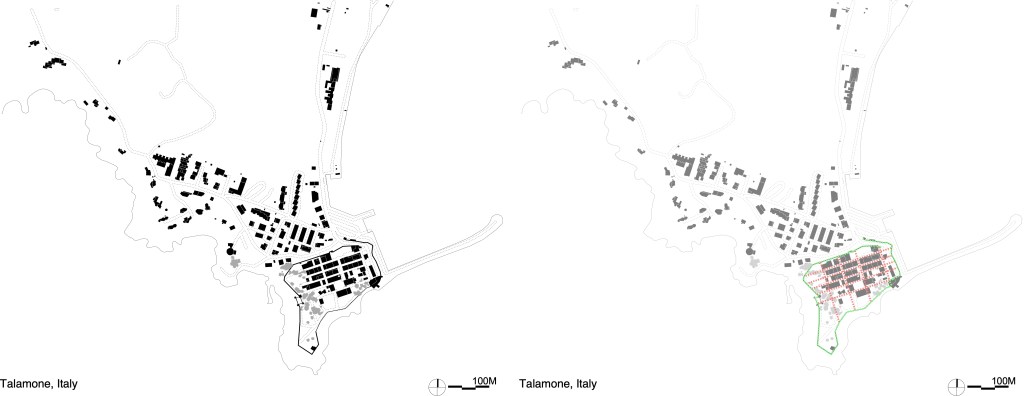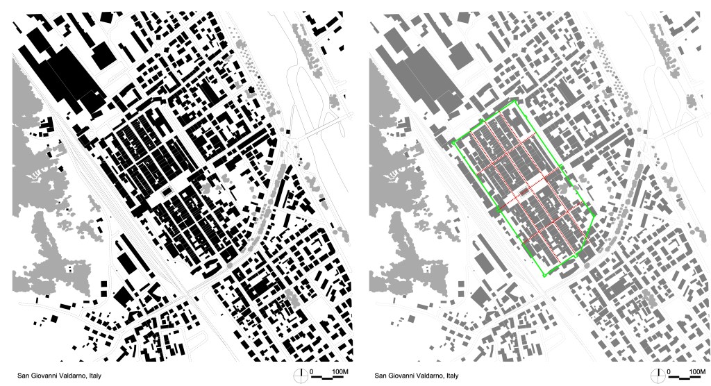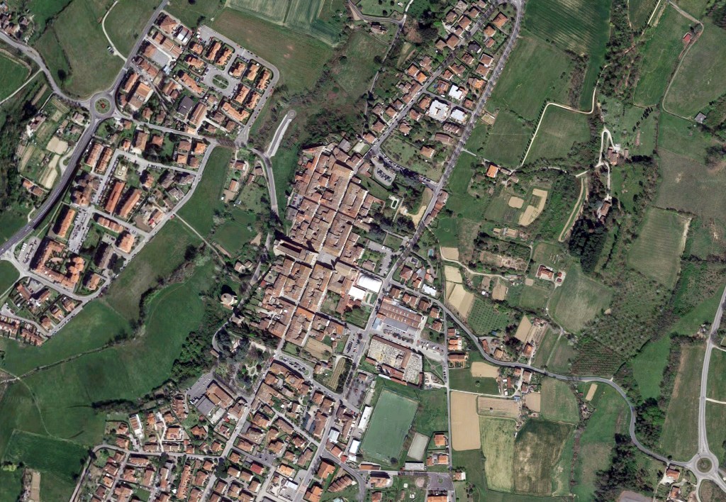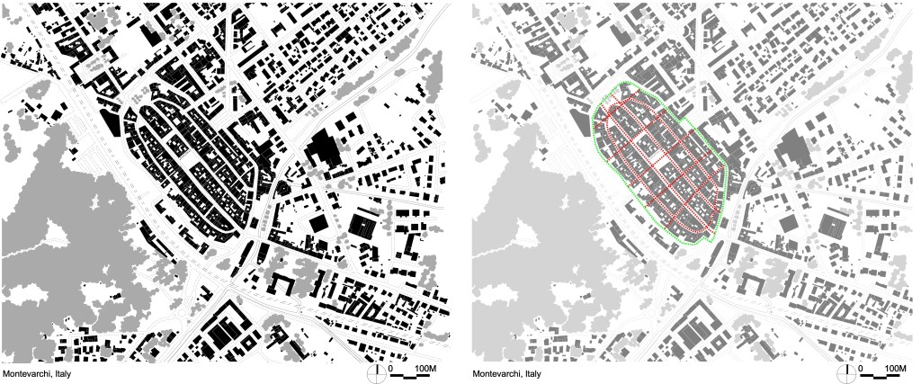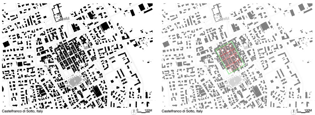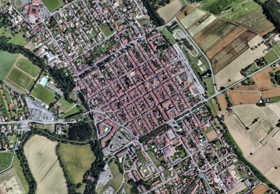 A number of years ago I discovered a book on medieval new towns titled, “Florentine New Towns: Urban Design in the Late Middle Ages,” by David Friedman. I found it interesting that during my studies of urban design I had never been introduced to this urban typology. I was taught that the urban typology of the medieval ages was stereotypically organic in nature. The question then arises, “What makes medieval new towns so different than other towns of that period?” The answer, their orthogonal grid. A quick comparison below are two examples of medieval towns. The first shown below is the German town of Tübingen. Note the seemingly haphazard arrangement of the town blocks in the first illustration, and in the second the bounding city wall. This town is most likely conforming to the geography, and possibly was developed around the castle (Schloss) located to the south-east. This plan tended to be the typology we were told was most common.
