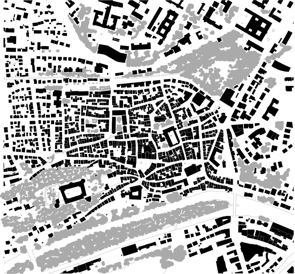Compare Tübingen to the Italian medieval new town of Terranuova Bracciolini, with its ridged orthogonal grid.