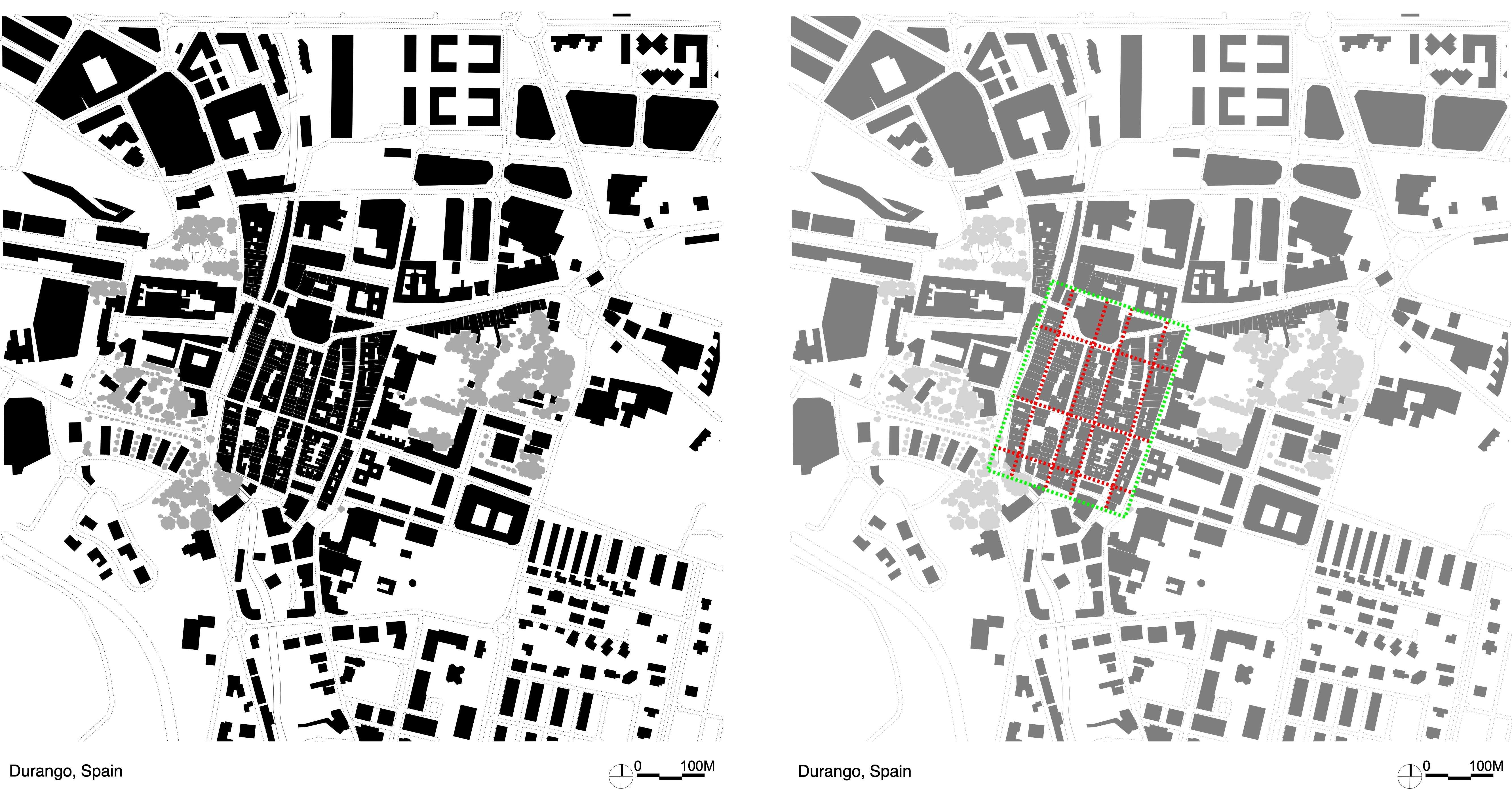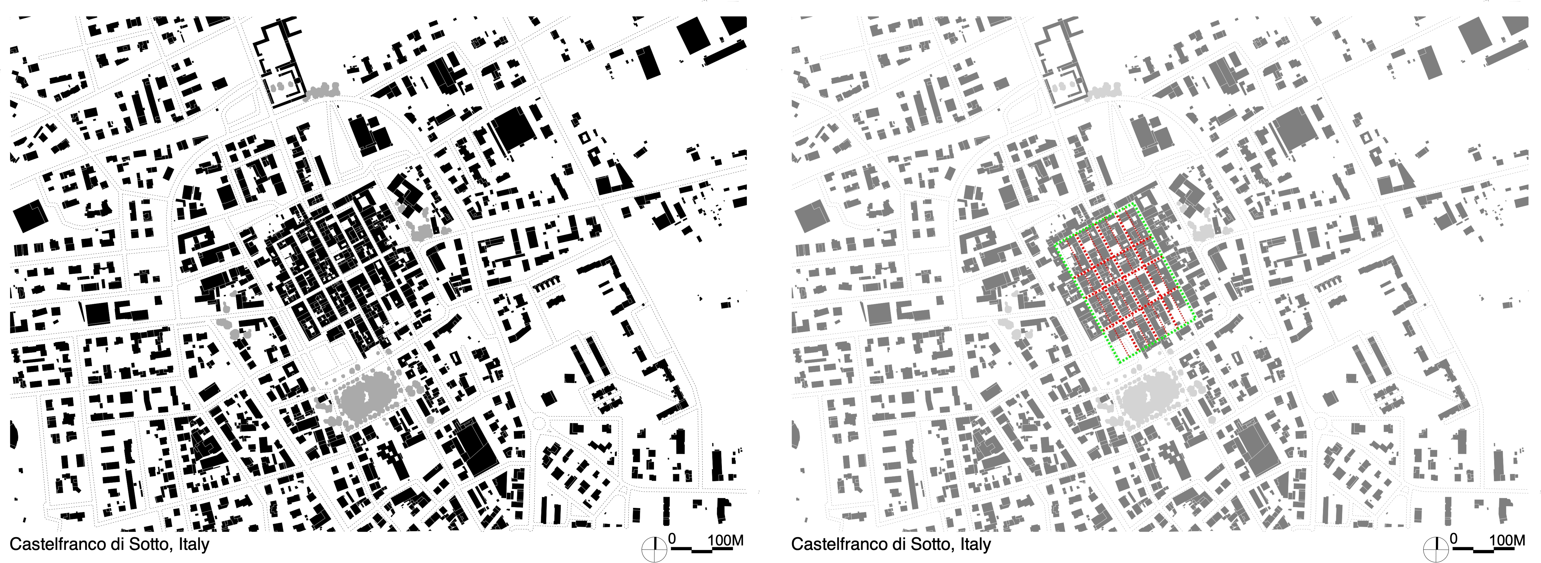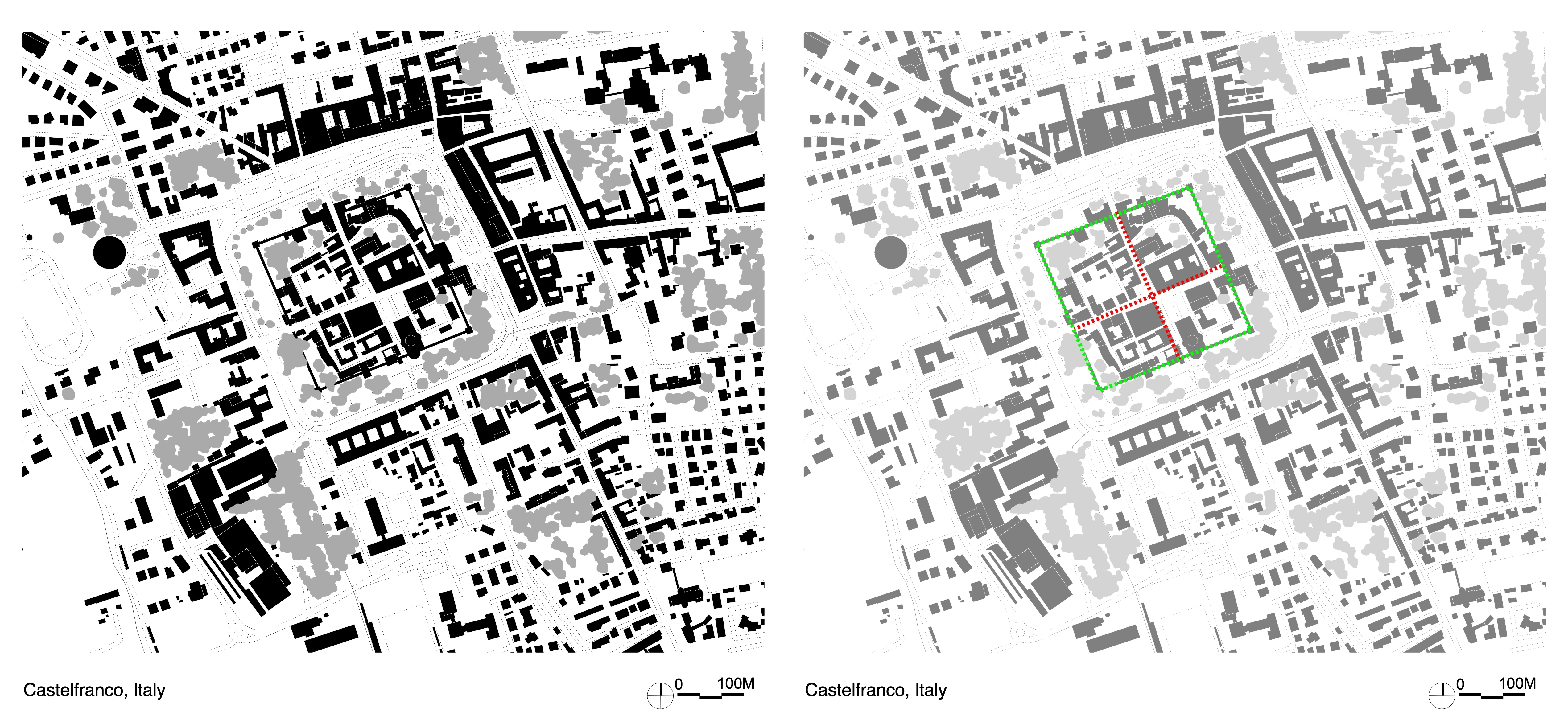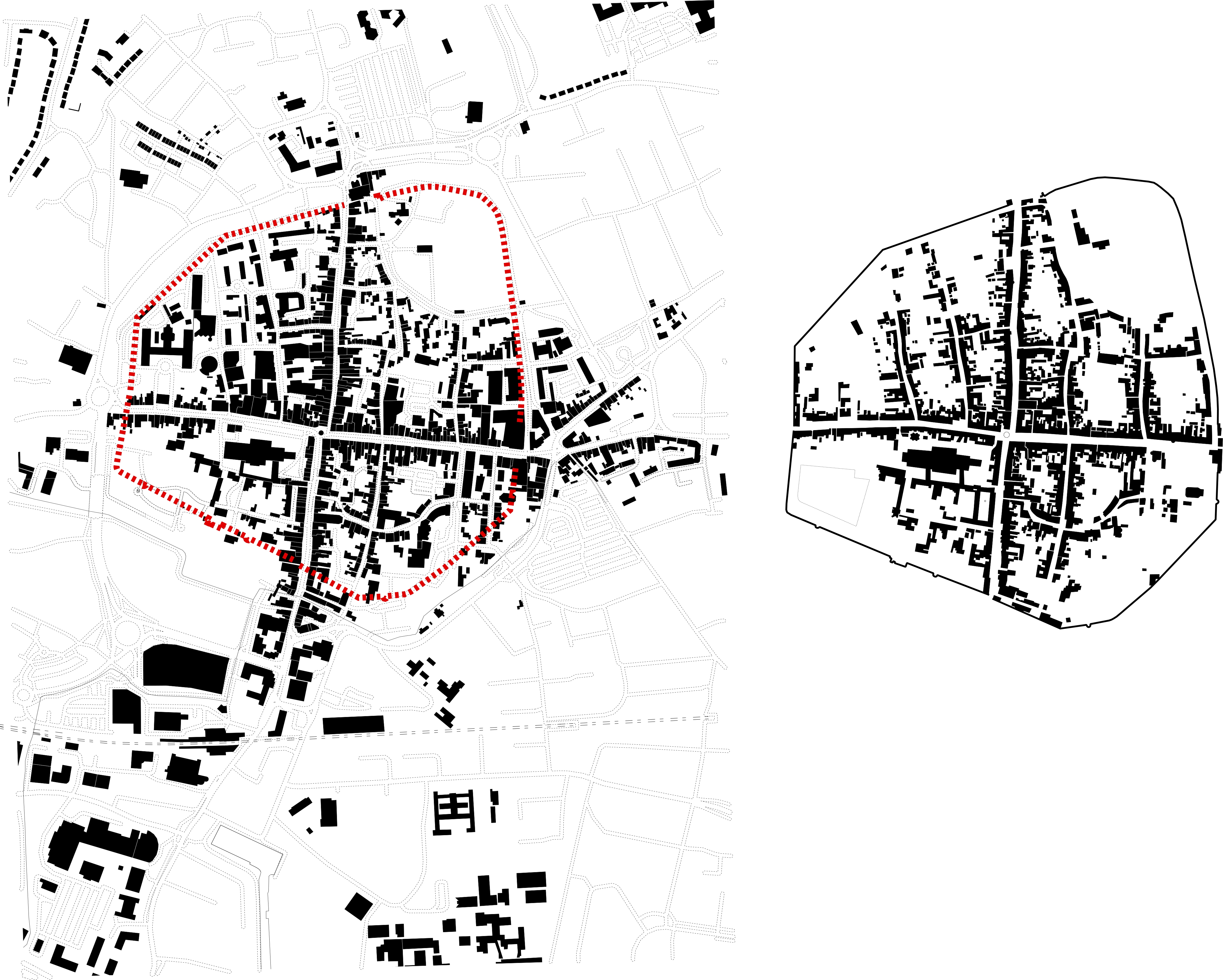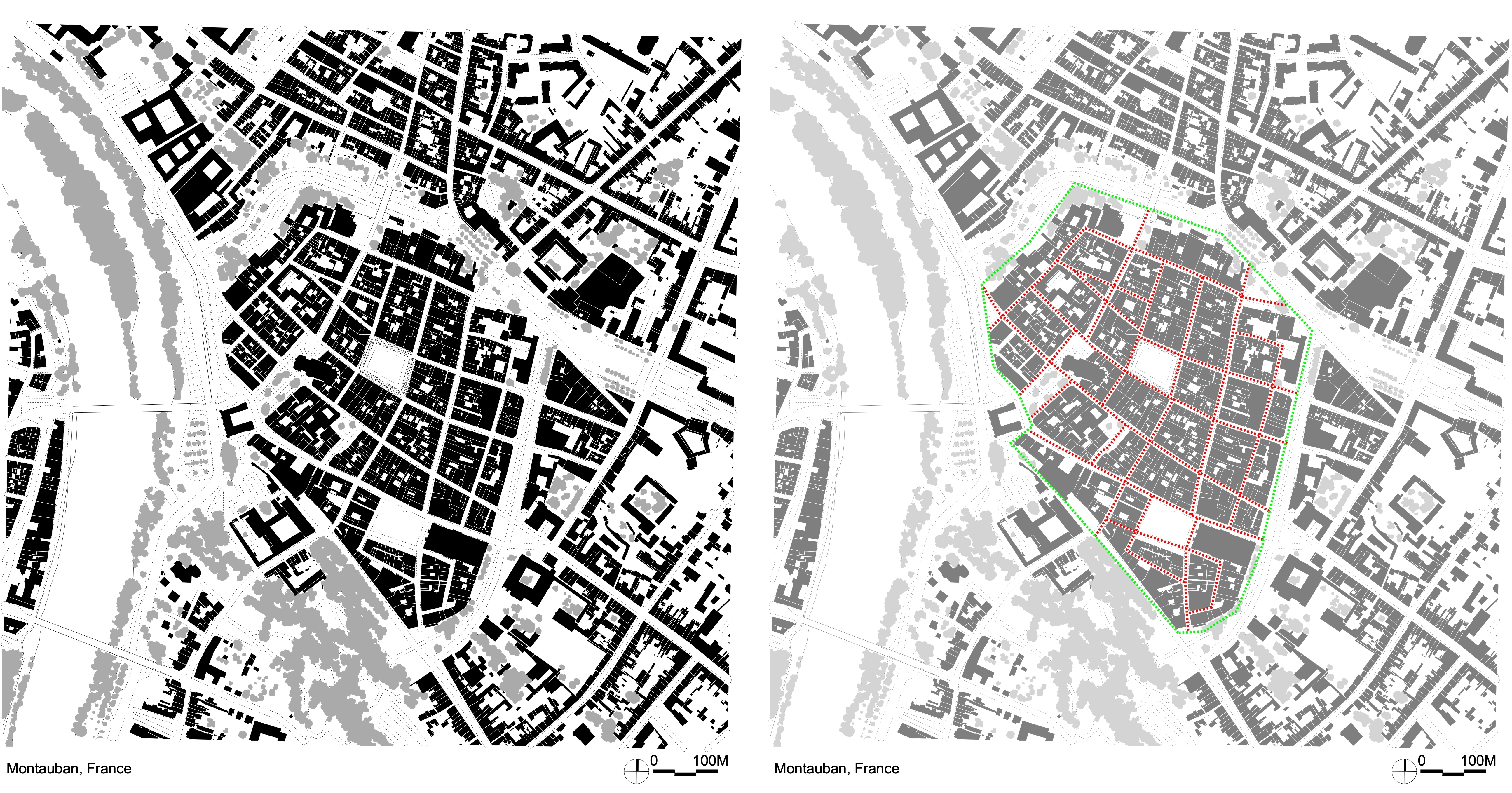 The following are a series of figure ground drawings illustrating plans of medieval new towns throughout Europe. I do not plan to go into the political history of the area, or why the cities were actually created. I’ll referyou to variousreadings if you’d like to do further research into the subject. What I will do, after I illustrate all the plans I’ve drawn, is to discuss some of the various repetitive conditions I’ve noticed during my research. I’m also supplying accompanying analysis, and possible earlier maps of the cities, along with some photos I’ve discovered that either show an aerial view of the urban center, or a photo of the major town square.