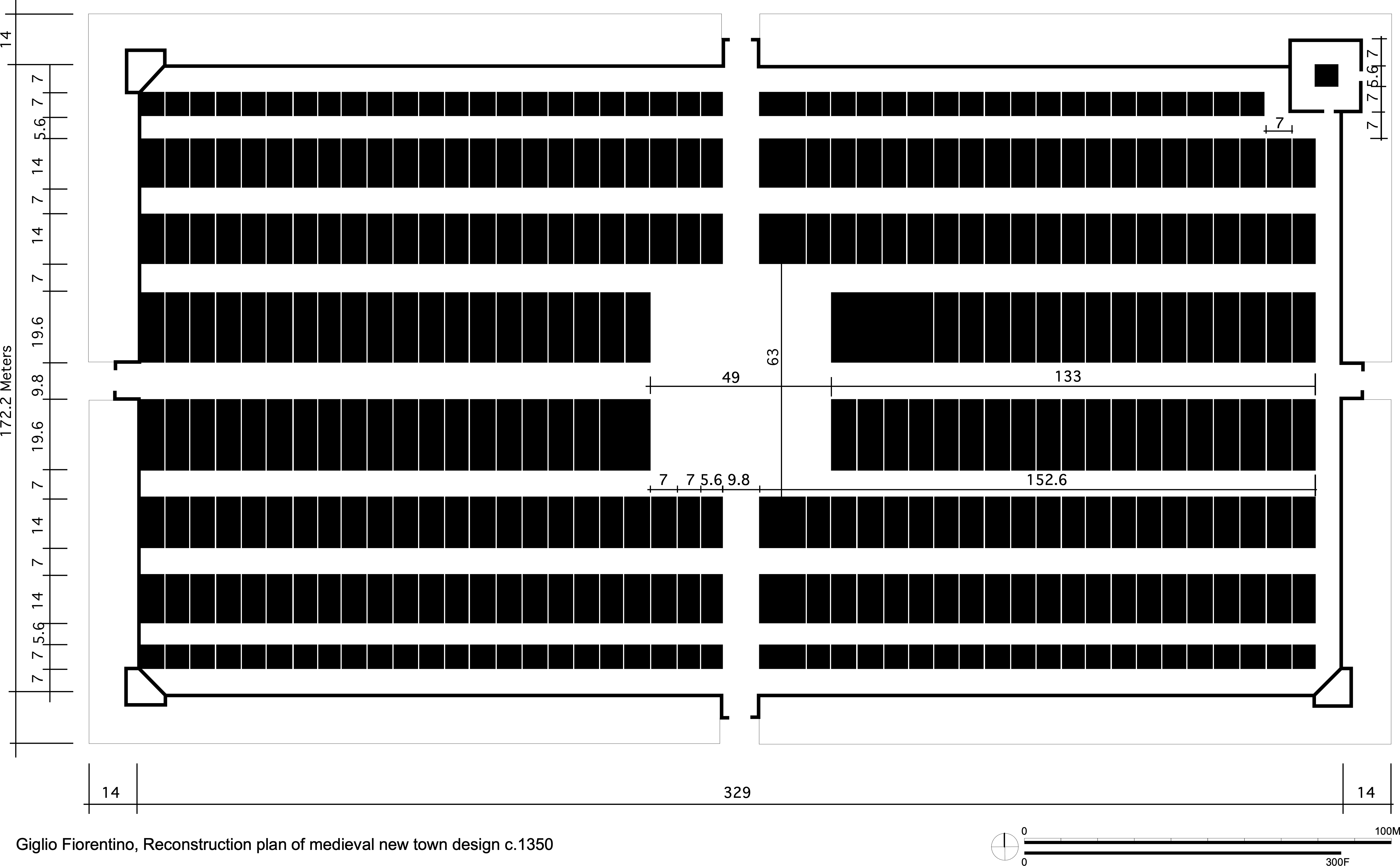 It’s a common belief that all of the medieval new towns tended to follow a formula in their design process. In Boerefijn’s thesis he discusses possible methodologies for designing medieval new towns, but basically negates the possibility of an all-encompassing mathematical formula in designing the towns.