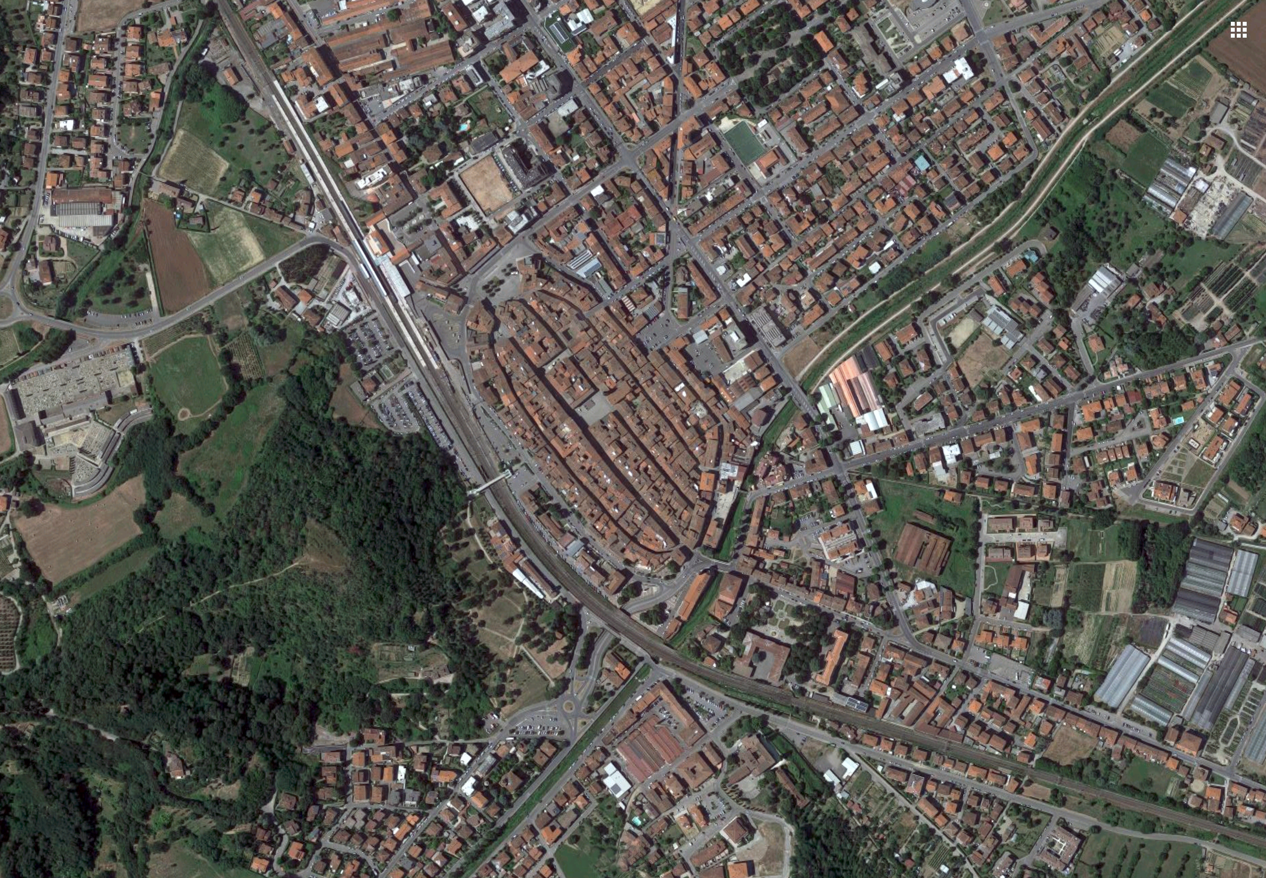 A number of years ago I discovered a book on medieval new towns titled, “Florentine New Towns: Urban Design in the Late Middle Ages,” by David Friedman. I found it interesting that during my studies of urban design I had never been introduced to this urban typology. I was taught that the urban typology of the medieval ages was stereotypically organic in nature. The question then arises, “What makes medieval new towns so different than other towns of that period?” The answer, their orthogonal grid. A quick comparison below are two examples of medieval towns. The first shown below is the German town of Tübingen. Note the seemingly haphazard arrangement of the town blocks in the first illustration, and in the second the bounding city wall. This town is most likely conforming to the geography, and possibly was developed around the castle (Schloss) located to the south-east. This plan tended to be the typology we were told was most common.