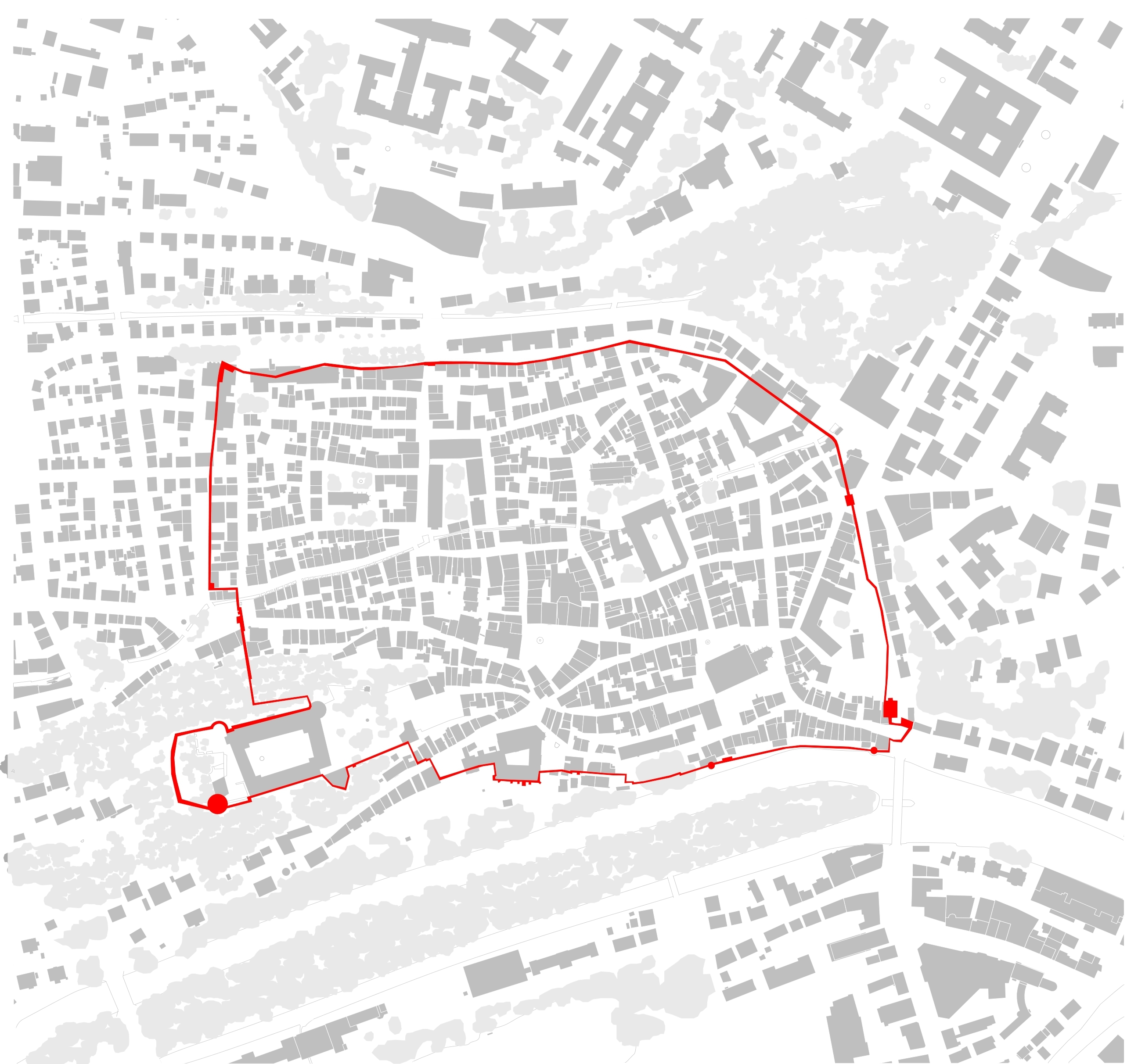 Compare Tübingen to the Italian medieval new town of Terranuova Bracciolini, with its ridged orthogonal grid.