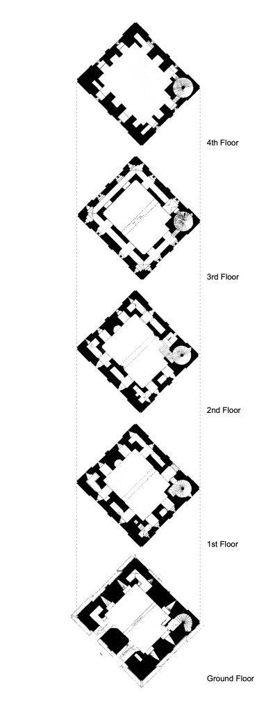 A precedent for the urban towers are the simple stand-alone stone towers found throughout Irish and English castles. An example below is the Gaelic Castle, Castlederg, County Clare, Ireland.