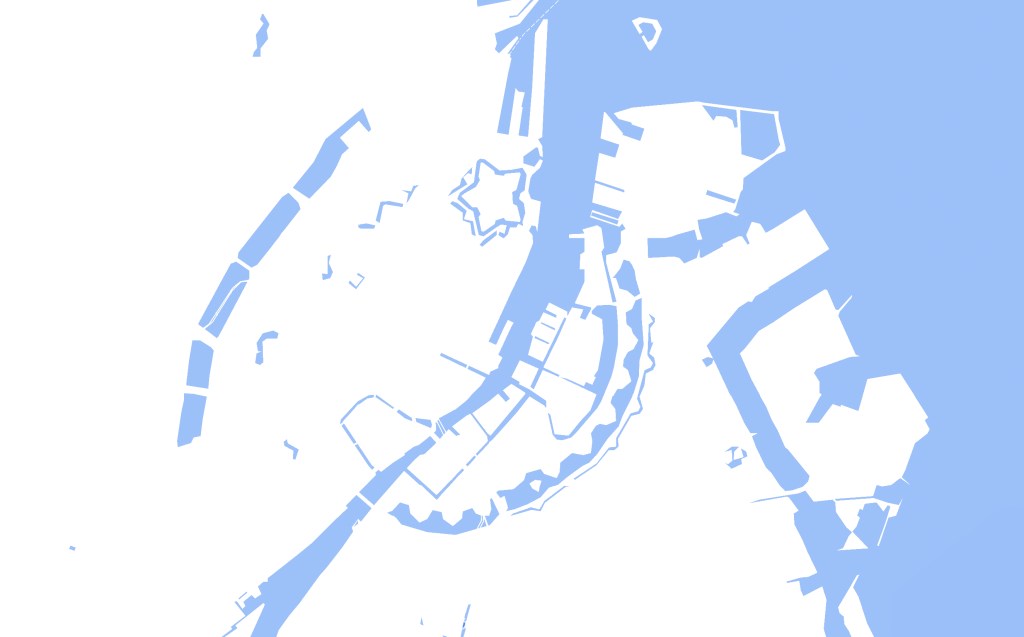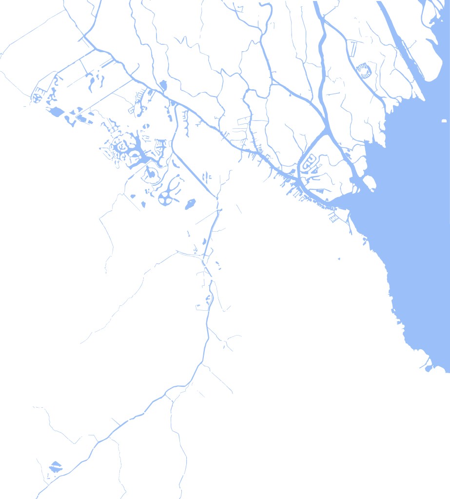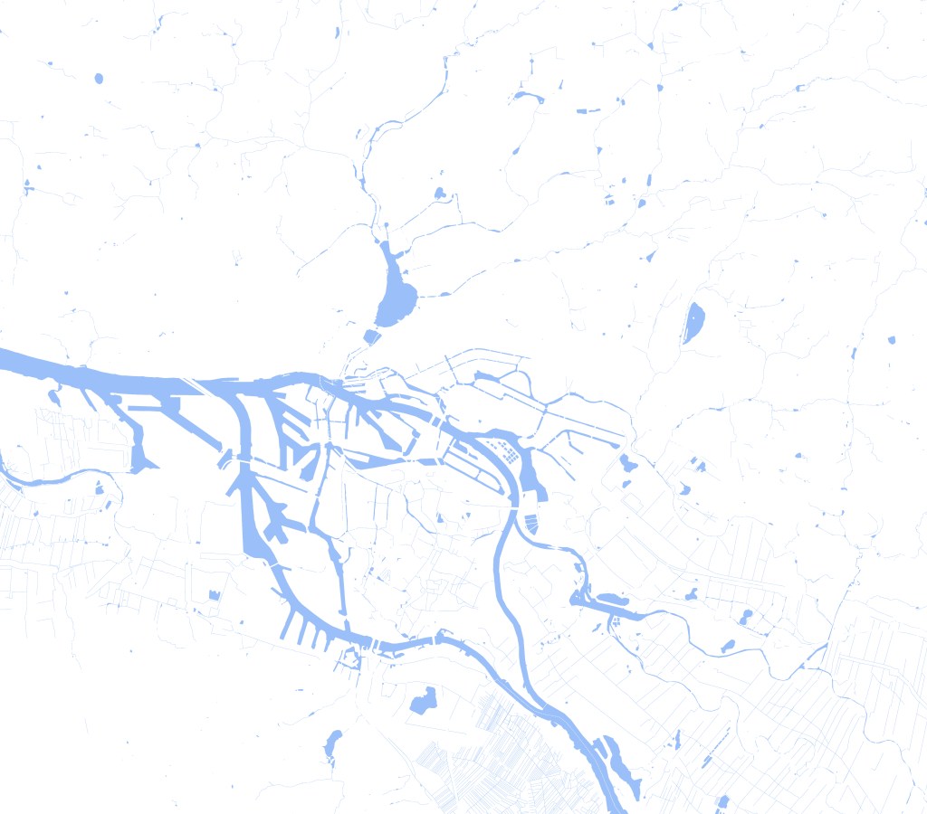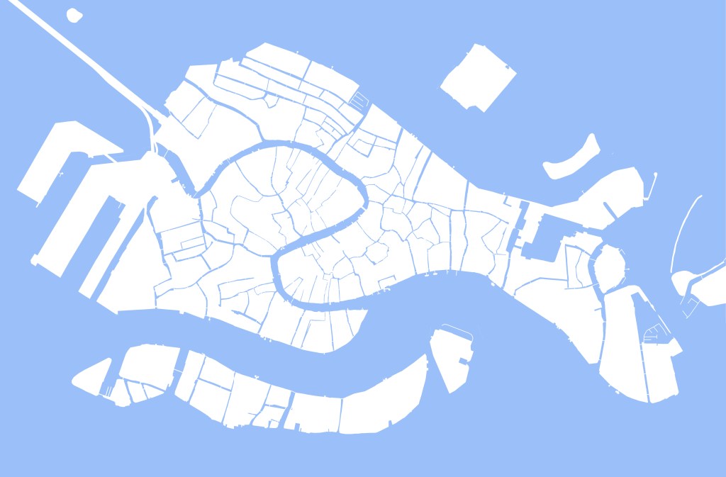 When the term “Canal City” is mentioned the first city that comes to mind is Venice, Italy. Canal cities exist though all over the world. In this post I’ll be illustrating various cities that contain transportation waterways. To demonstrate these circulation pathways I’ve produced a series of maps that only show the water systems within the urban settings, and in some cases the surrounding countryside.