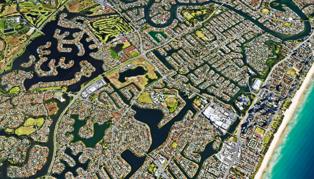 The Gold Coast has the largest constructed canal network in the southern hemisphere, with 135 constructed lakes and more than 248 miles (400 kilometers) of canals.