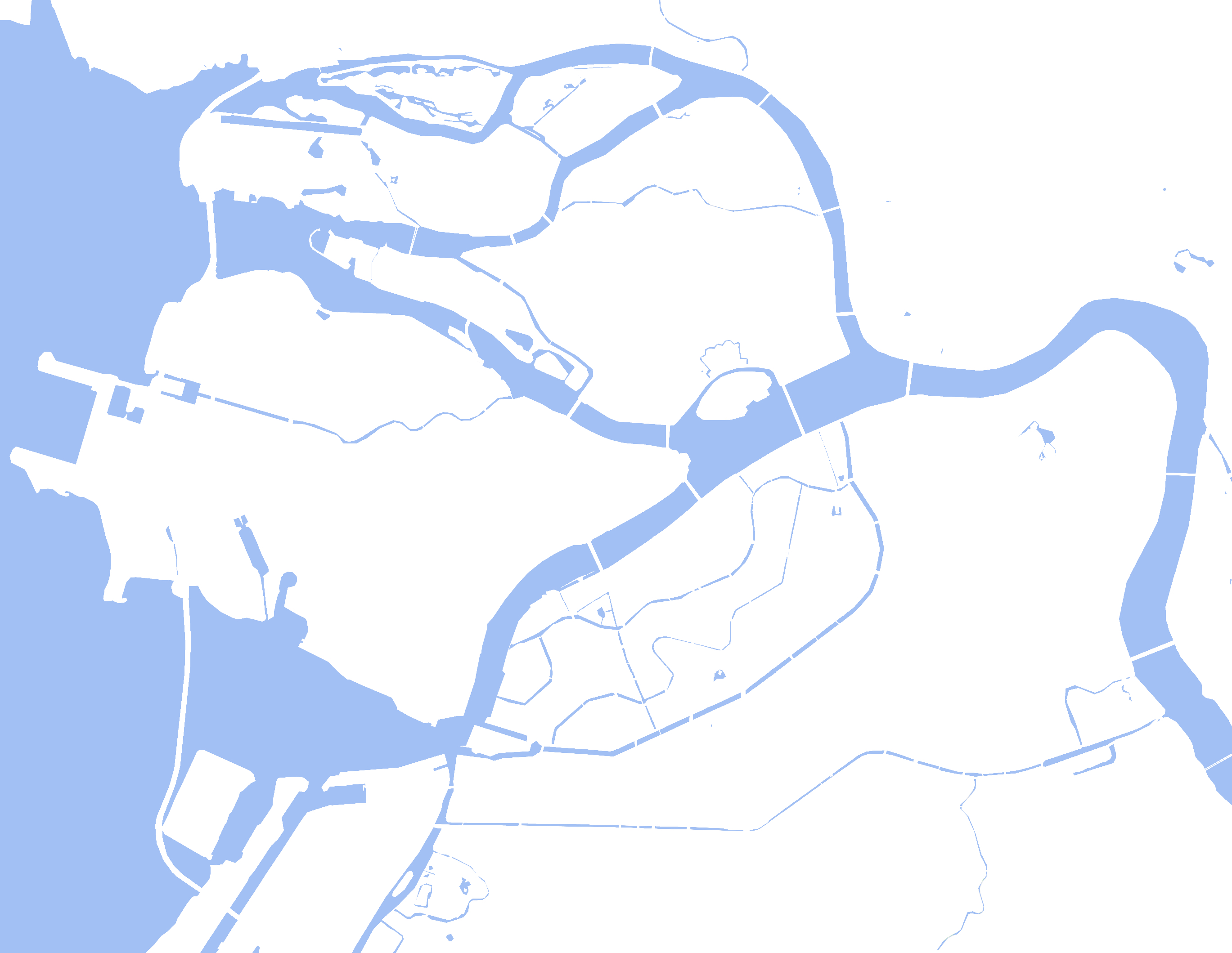 When the term “Canal City” is mentioned the first city that comes to mind is Venice, Italy. Canal cities exist though all over the world. In this post I’ll be illustrating various cities that contain transportation waterways. To demonstrate these circulation pathways I’ve produced a series of maps that only show the water systems within the urban settings, and in some cases the surrounding countryside.