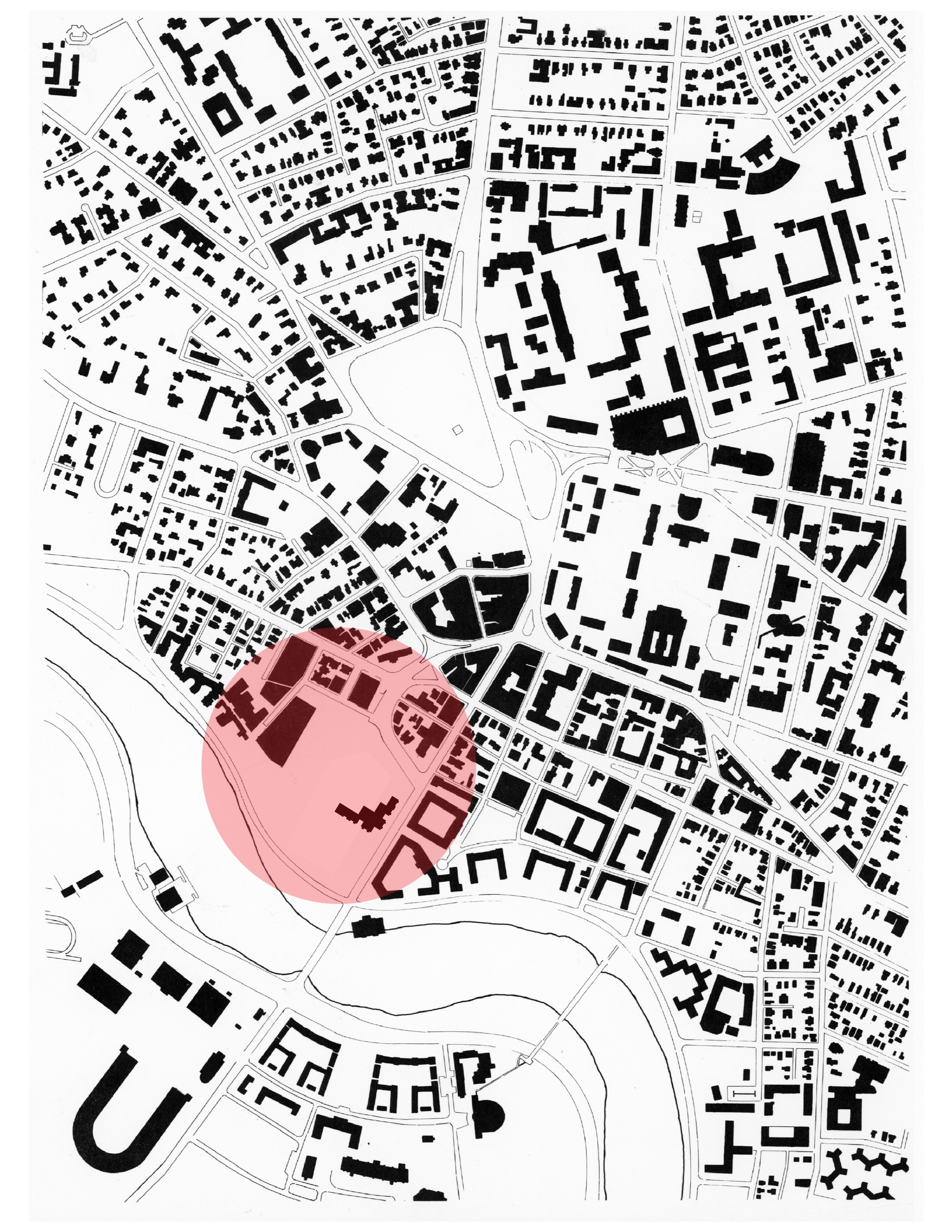 The second project issued was the figure/ground plan of the city of Cambridge, Massachusetts, USA and ran around 12 weeks. The area in red was the given site. We were also asked to incorporate the Harvard Kennedy School building into our designs. The aerial view is from 1974 and doesn’t show the Harvard Kennedy School.