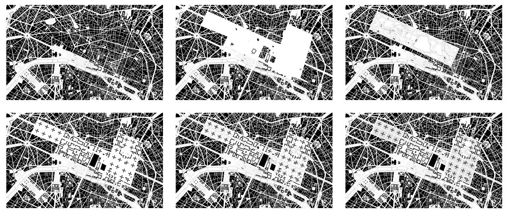 At the final review the discussion of the plates by the committee focused on the comparative scale of cities, and the individual plates as frameable pieces. Ironically there was no dialogue of about Space, Urban Elements, or Strategies and Design Tactics. As to the written part of the thesis, when I recently read it I found it lacking in the actual understanding of the potential impact the drawings could have in understanding urban fabric and design schemes. It wasn’t until years later when I published The Genealogy of Cities did I fully understand the potential of studying historic urban plans. As an example, while writing The Genealogy of Cities I took the image of the Collage of Paris and Central Park and expanded on the concept, illustrating Le Corbusier’s proposal for central Paris, Plan Voisin, and exemplifying the impact his design would have had on central Paris.