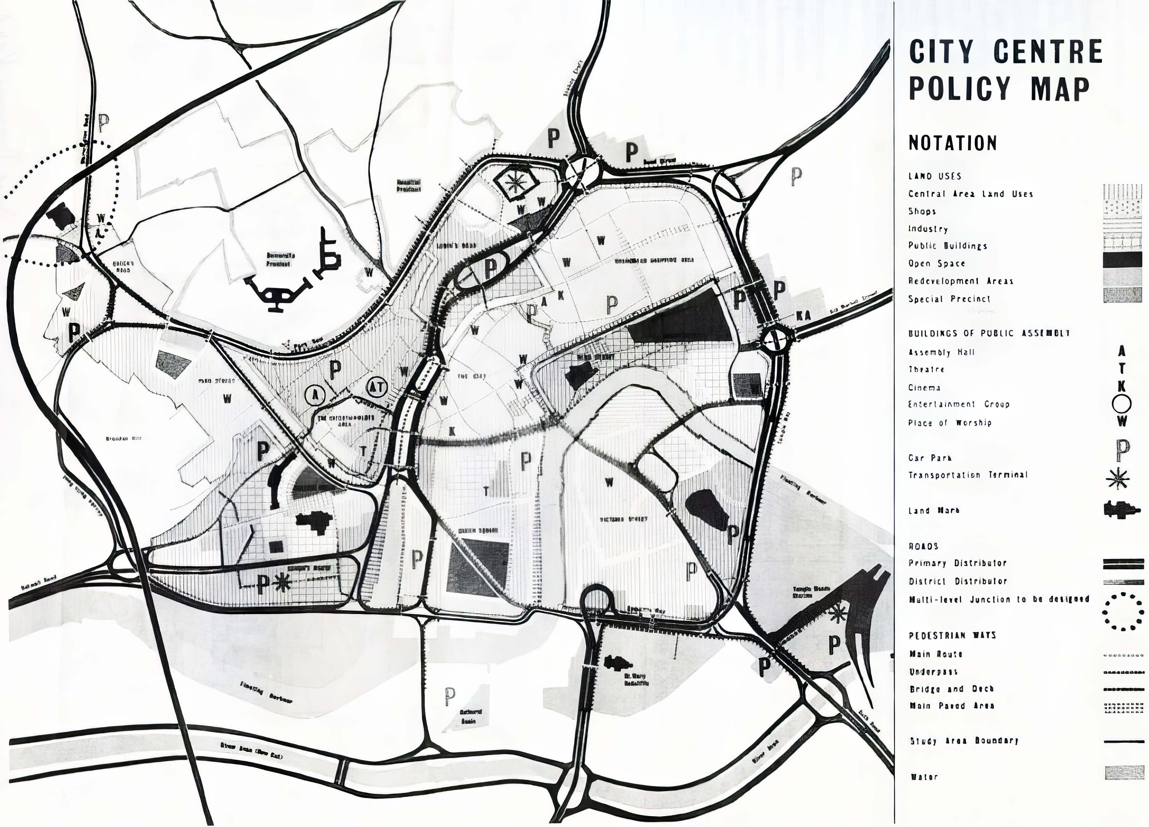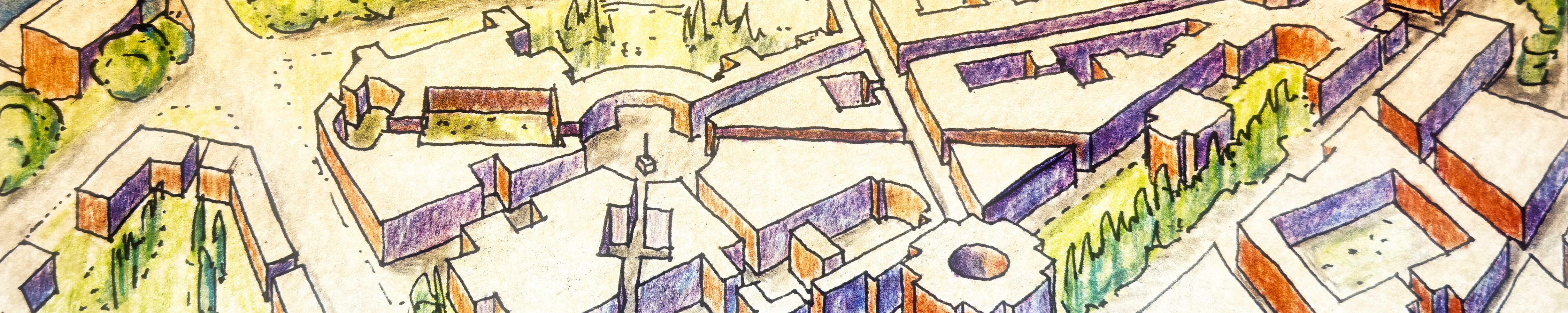 Prior to the introduction of the use of the figure/ground drawing the typical town planning drawing was represented as a series of diagrams as shown in the image below.