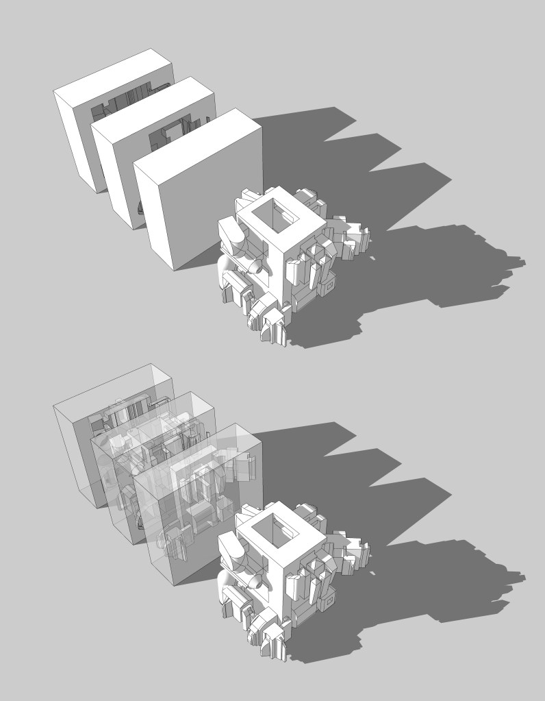While teaching at Kent State University a number of exercises were employed whereby the students analyzed both the John Soane residence, and Libeskind’s Danish Jewish Museum. Enabling them to better understand the concepts of solid negative space, and void negative habitable space.