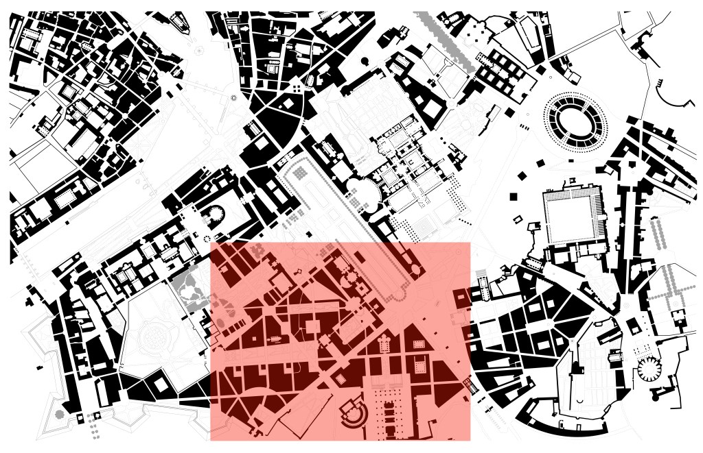 This concept of collage is most apparent in Colin Rowe’s design for a portion of the Nolli Plan, in Roma Interrotta.9