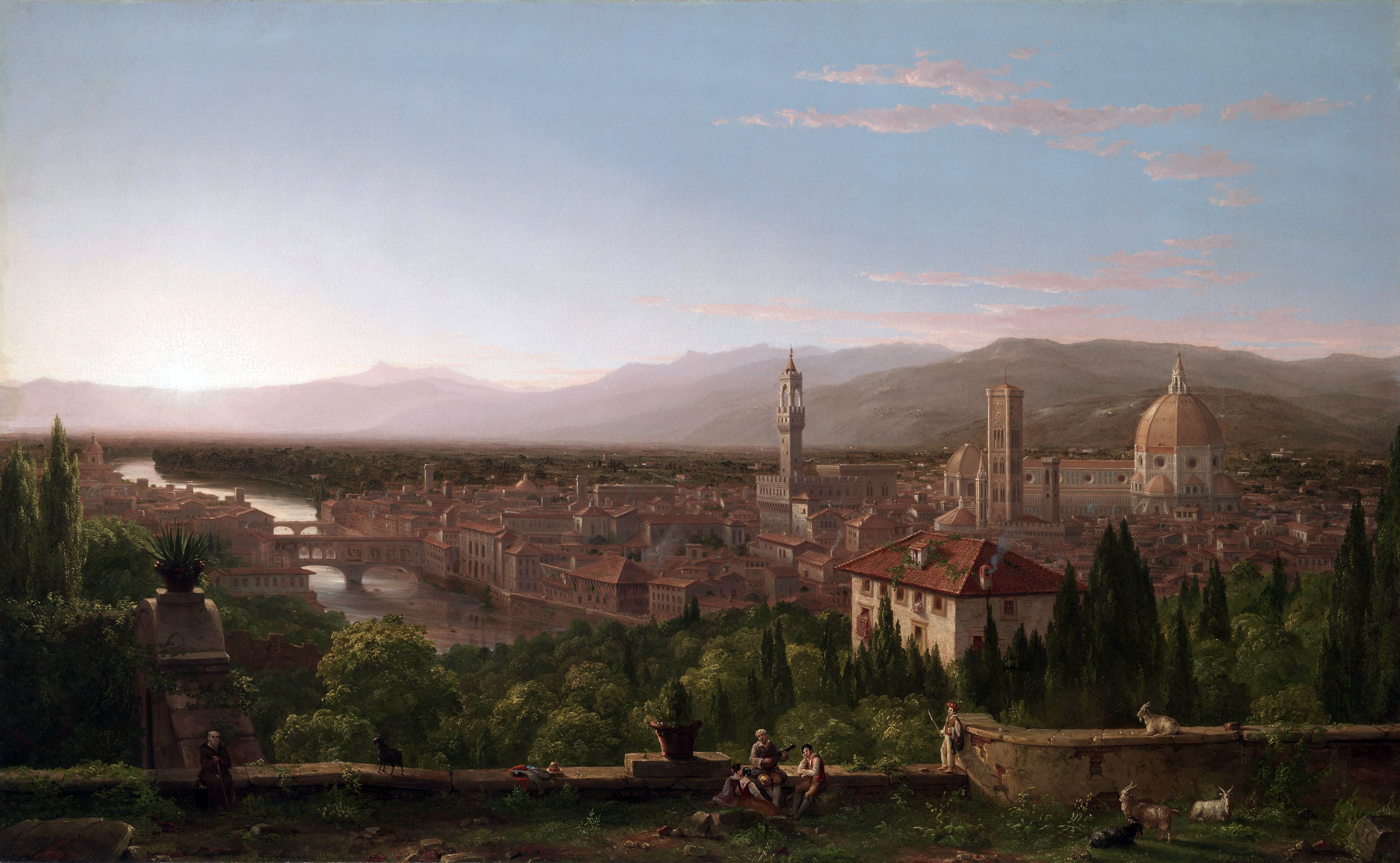 The painting below, titled View of Florence, is by the American painter Thomas Cole, 1837. Painted from the area known as San Miniato al Monte, this view is south of the river Arno, and east of the city.