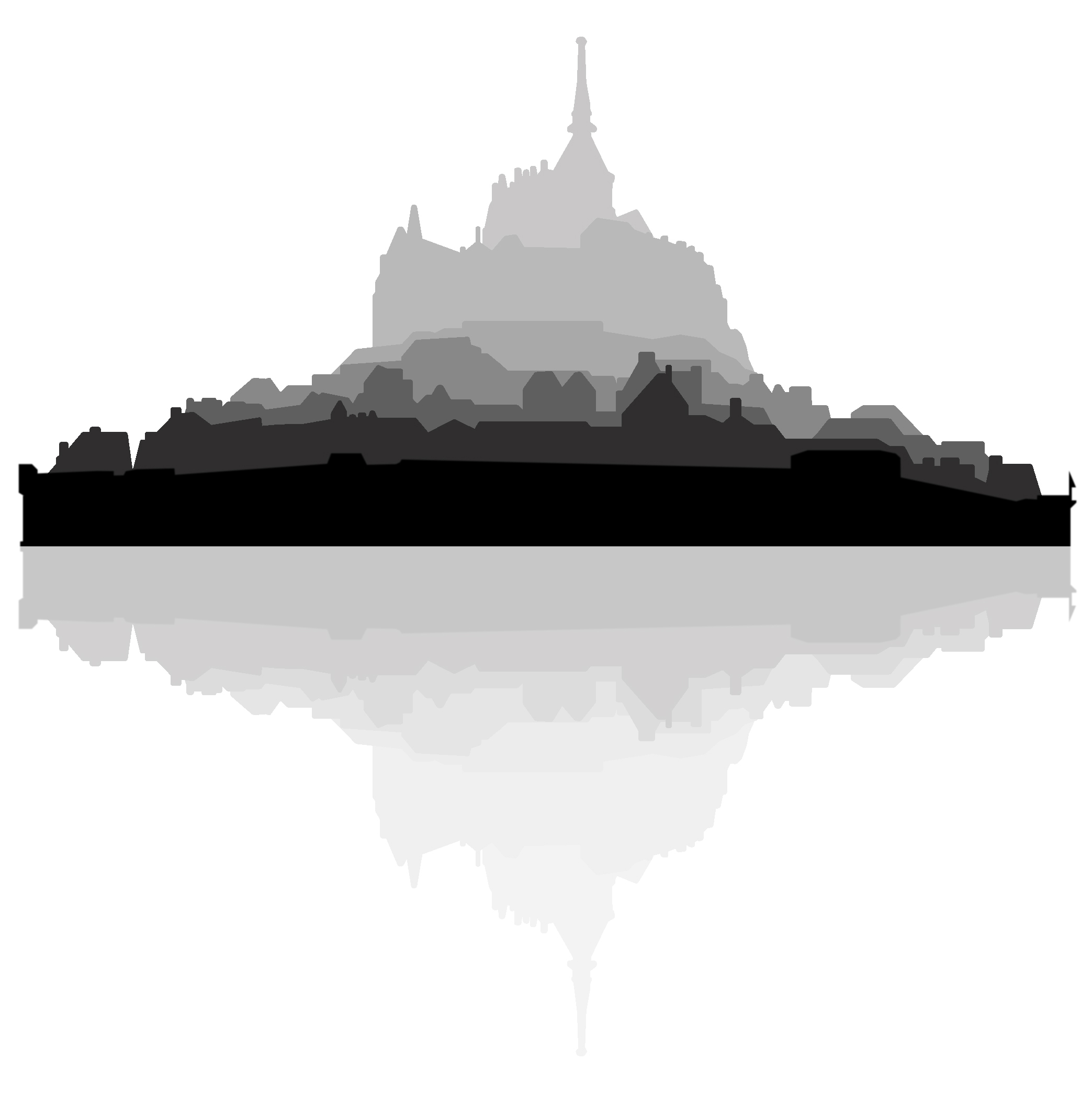 It’s very easy to make a silhouette of a city. Find an image(s) that includes the key landmarks representing the urban setting. You don’t have to perfectly trace the actual outline of the skyline, as shown in the examples above. These silhouettes are created by grouping the recognizable features. At times though tracing the actual outline of the skyline may be important as the most recognizable feature. Shown in the image below is the island of Mont Saint Michel, France. Followed by the silhouette I created in Photoshop.